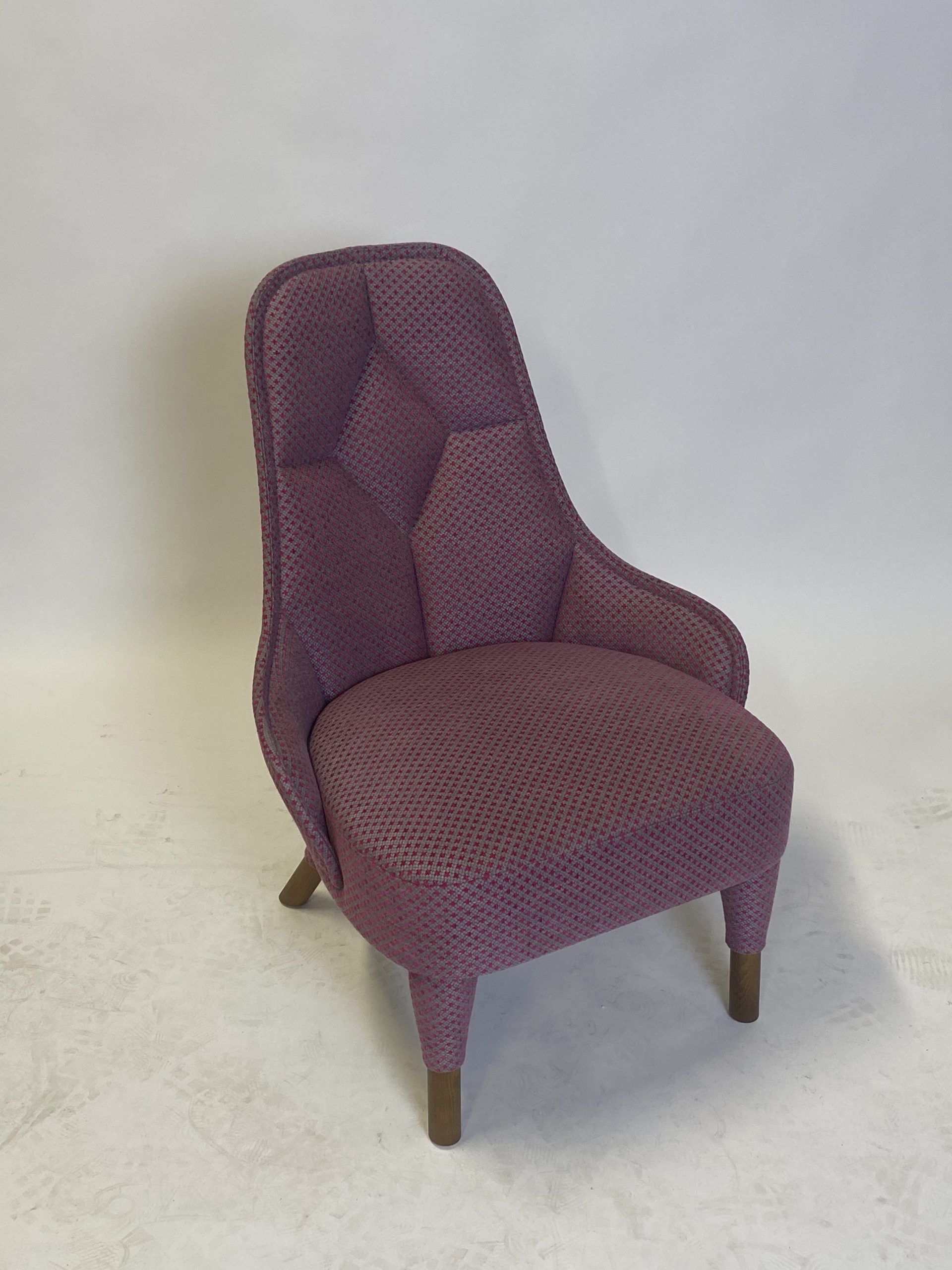 Fåtölj Emma från Gärsnäs – klädd i tyg Romo Emerson 7701/05 peony Ben i valnötsbets, sömmar i samma gråa som i tyget