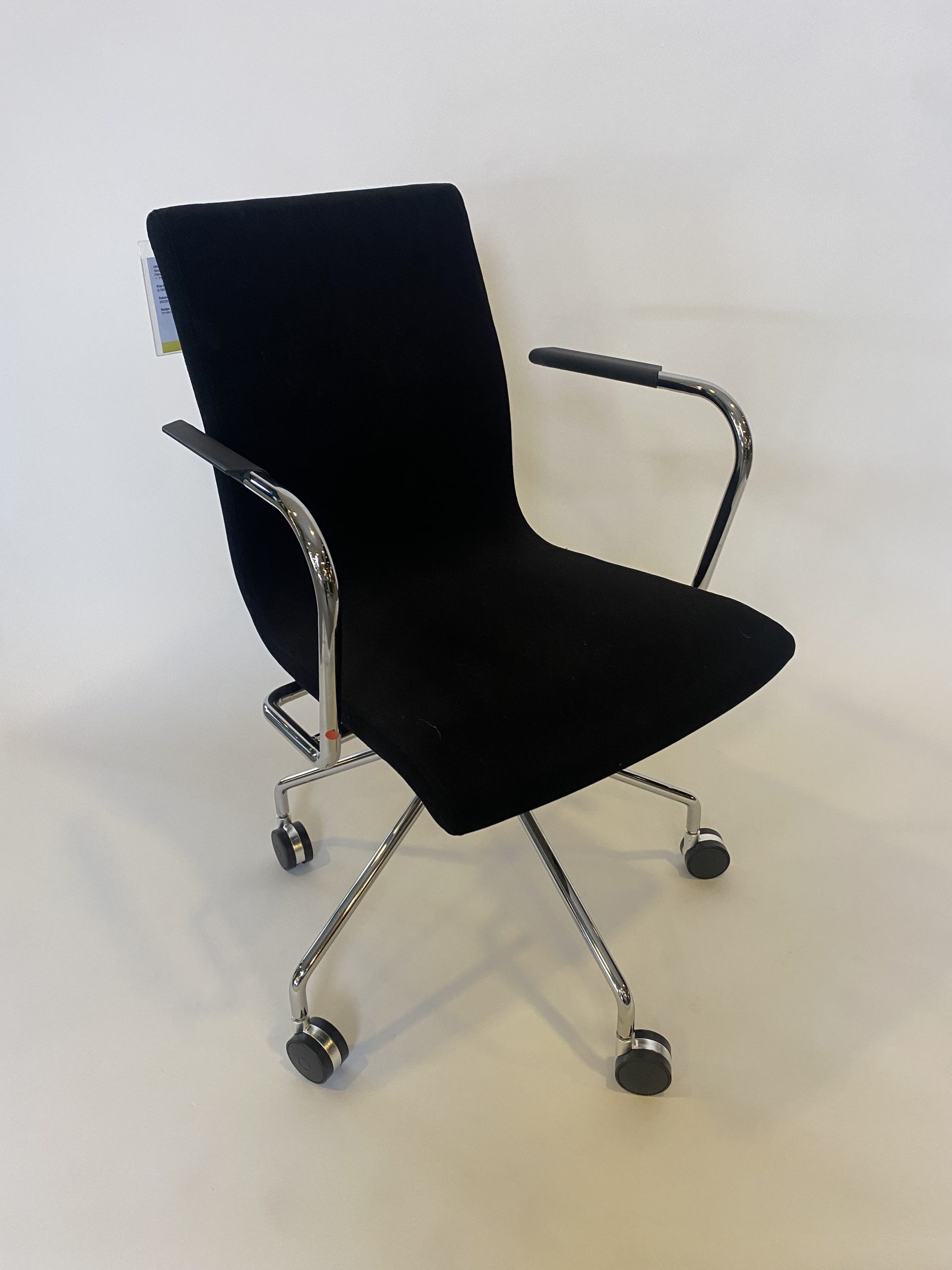 Karmstol från Skandiform med kromat underrede på hjul.
