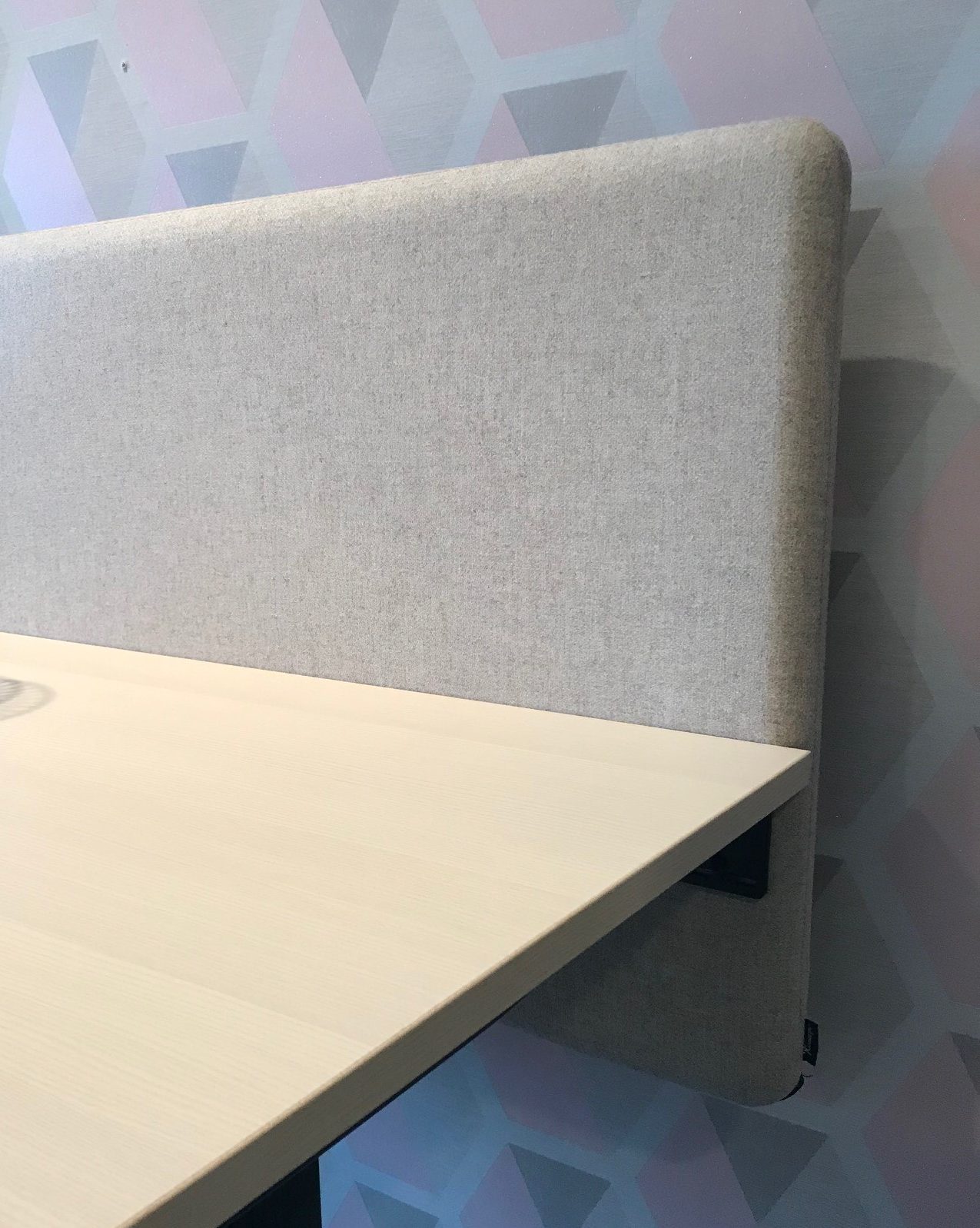 Bordskärm Vibe Focus Flyby från Kinnarps 140x65cm, i tyget Fenice 8084 Sand med mörkgrå fästen.