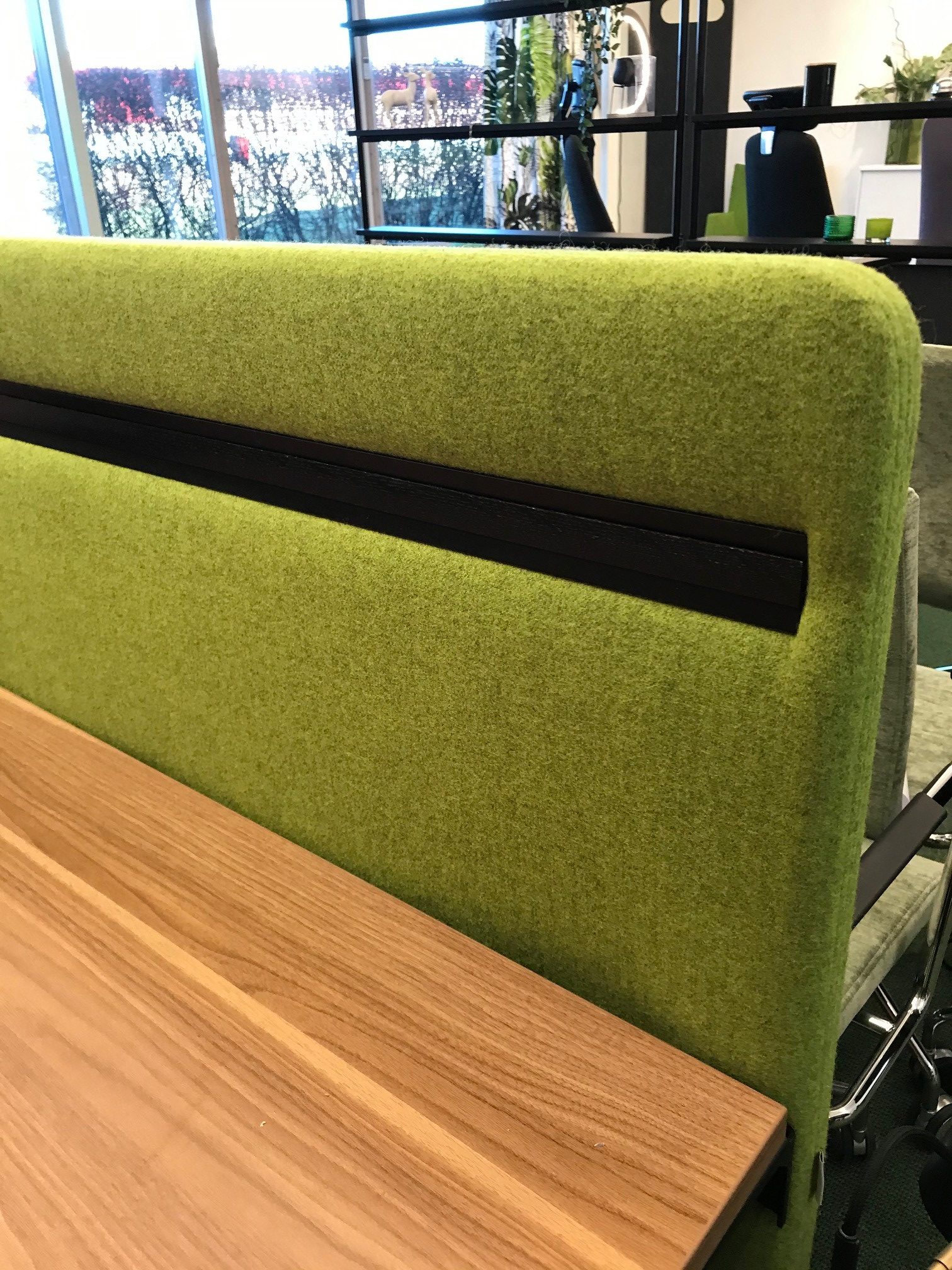 Bordsskärm i textil Blazer Lite LTH55 limegrön med funtkionslist i svart, alla beslagen är i svart.